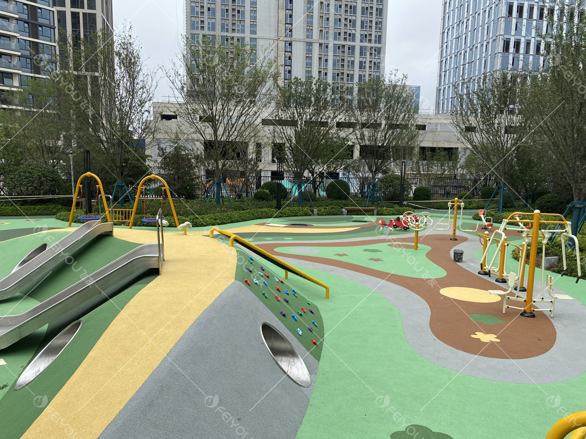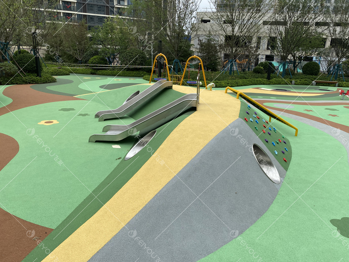 地面材質(zhì)采用柔軟的EPDM塑膠地墊,為游玩的小朋友們形成了良好的游玩保護(hù)。