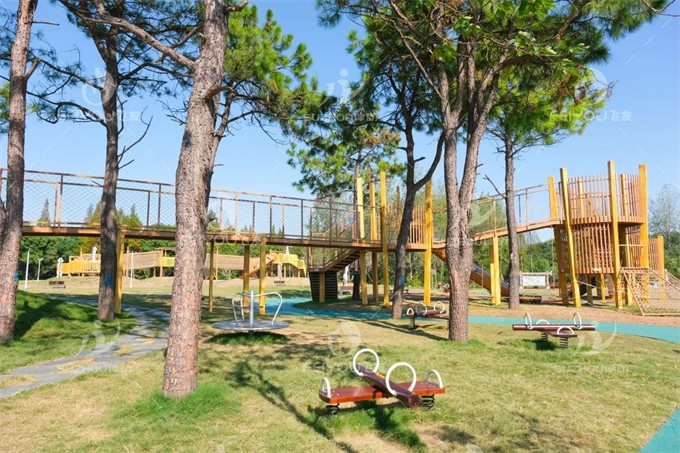 結合周邊樹林環(huán)境,將游樂設施與森林景觀相融合;其目的是讓兒童在野外與自然的環(huán)境中進行真正的溝通。