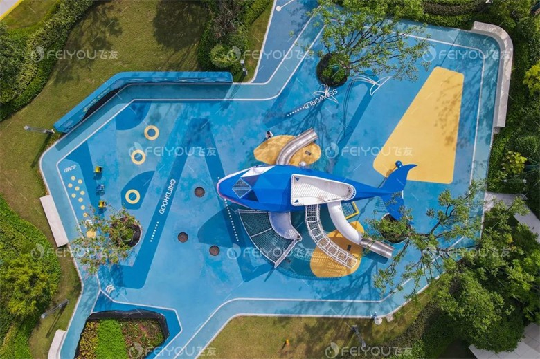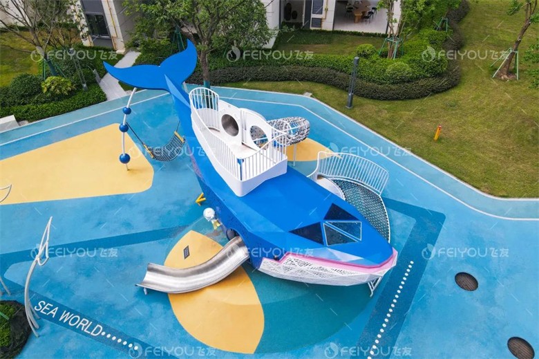 設(shè)計(jì)師將“雕塑與游樂”完美結(jié)合,采用切面化的手法生動(dòng)地再現(xiàn)了鯨魚躍出水面的瞬間。