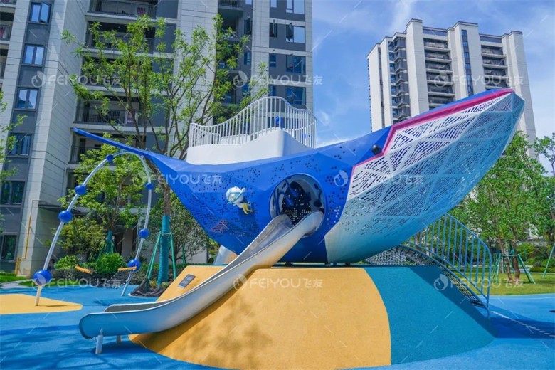 大藍(lán)鯨兒童主題樂園融合了滑梯、爬網(wǎng)、傳聲筒等多種游樂設(shè)施,旨在通過游戲的方式促進(jìn)孩子們?cè)谧匀惶剿?、語言、人際交往、身體運(yùn)動(dòng)和視覺空間等五大智能領(lǐng)域的發(fā)展。設(shè)備嚴(yán)格遵循國家和歐洲的安全標(biāo)準(zhǔn),確保家長放心。