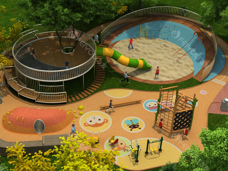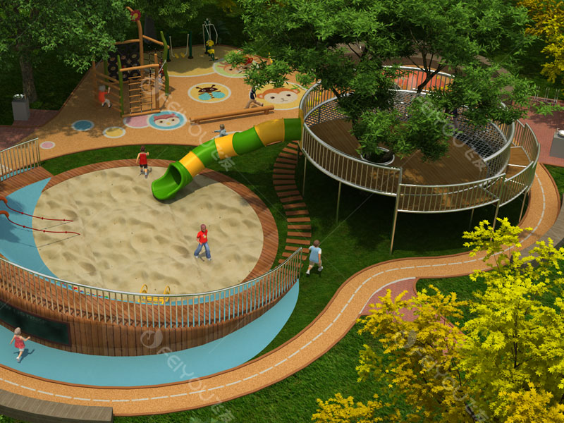 本設計是典型的“叢林游樂場”,一個讓兒童向往的兒童活動場地,配備不同的游戲設施,満足各年齡層的兒童活動需求,培養(yǎng)幼兒間的交流與協(xié)作能力。項目需求