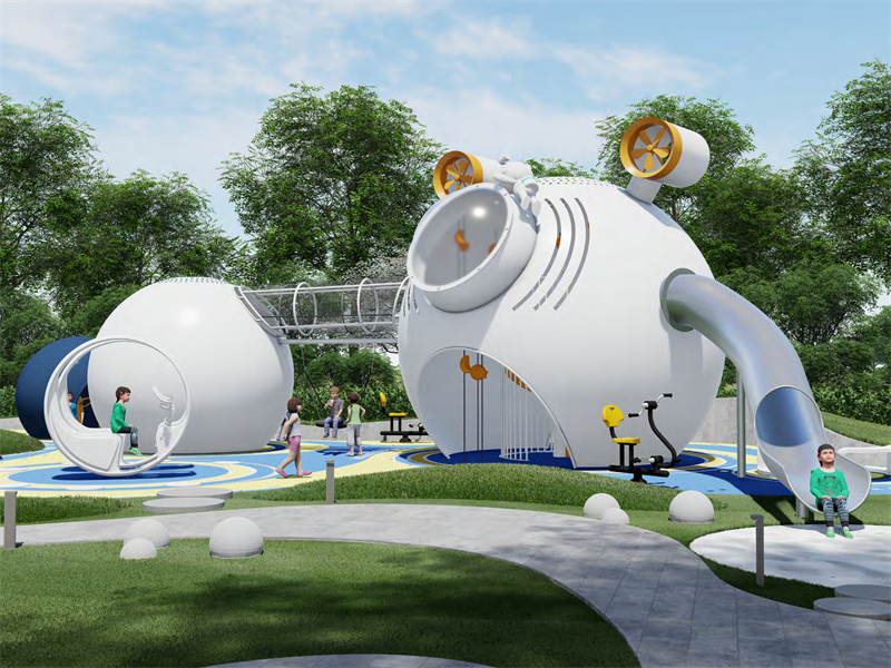 創(chuàng)意性:創(chuàng)意性的設(shè)計(jì)可以激發(fā)孩子們的想象力和好奇心。游樂(lè)設(shè)施可以采用色彩鮮艷、形狀獨(dú)特的設(shè)計(jì),或者加入有趣的圖案和故事元素,吸引孩子們的注意力。設(shè)施的結(jié)構(gòu)和功能可以設(shè)計(jì)成與動(dòng)物、植物或童話(huà)故事相關(guān)的形式,讓孩子們?cè)谟瓮嬷蝎@得樂(lè)趣和啟發(fā)。