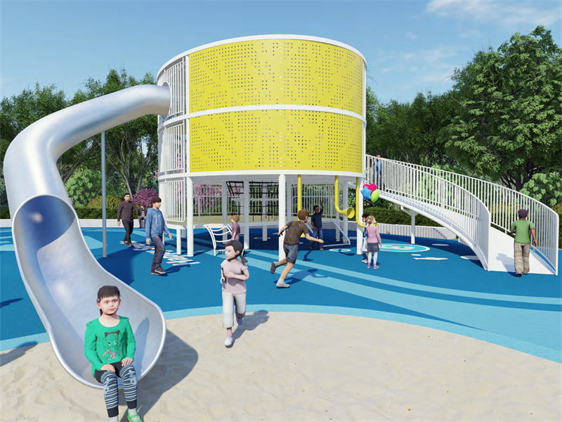 首先,在規(guī)劃游樂區(qū)域時,應(yīng)充分考慮公園的整體布局和地形特點。根據(jù)公園的大小和形狀,劃分出不同的功能區(qū),如兒童游樂區(qū)、青少年冒險區(qū)、成人休閑區(qū)等。對于兒童游樂區(qū),應(yīng)選擇色彩鮮艷、造型可愛的設(shè)施,如滑梯、秋千、蹺蹺板等,地面采用柔軟的材質(zhì),以確保兒童的安全。同時,設(shè)置一些親子互動的項目,如沙坑、小型迷宮等,增進家長與孩子之間的情感交流。