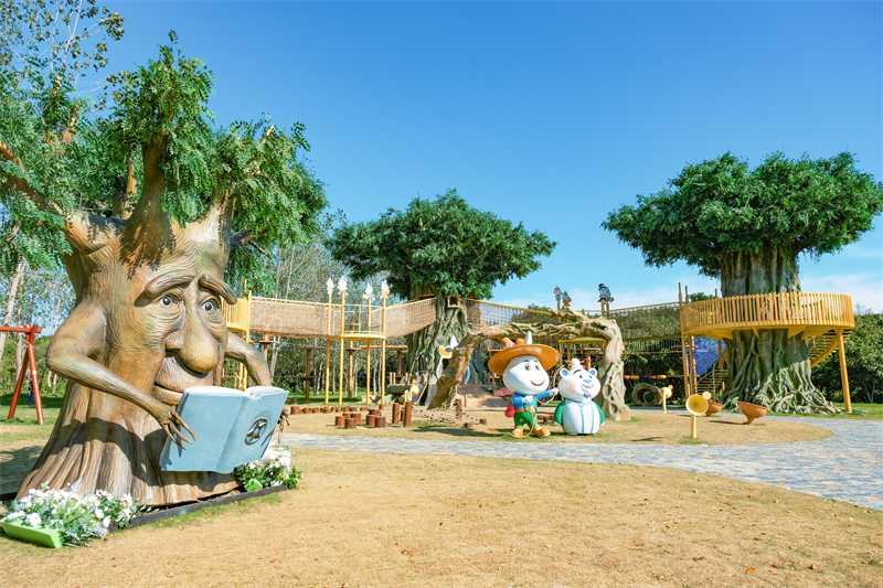 開放式游樂設(shè)備為兒童提供了自由發(fā)揮的空間。原木攀爬架可以變成海盜船,沙坑能塑造出微型城市,而秋千的擺動軌跡則激發(fā)了對物理規(guī)律的想象。在深圳大鵬葵涌河景觀樂園,兒童用自然材料搭建 “生態(tài)庇護所”,這種創(chuàng)造性活動使他們的發(fā)散思維能力提高 60%,問題解決能力提升 45%。更值得關(guān)注的是,無動力設(shè)備的 “低結(jié)構(gòu)” 特性(如可移動的組件)鼓勵兒童自主設(shè)計玩法,這種開放性體驗比結(jié)構(gòu)化游戲更能激發(fā)創(chuàng)新思維。